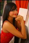 Teasing outfits: Fabulous brunette girl teases in her red lingerie with matching shoes and black stockings